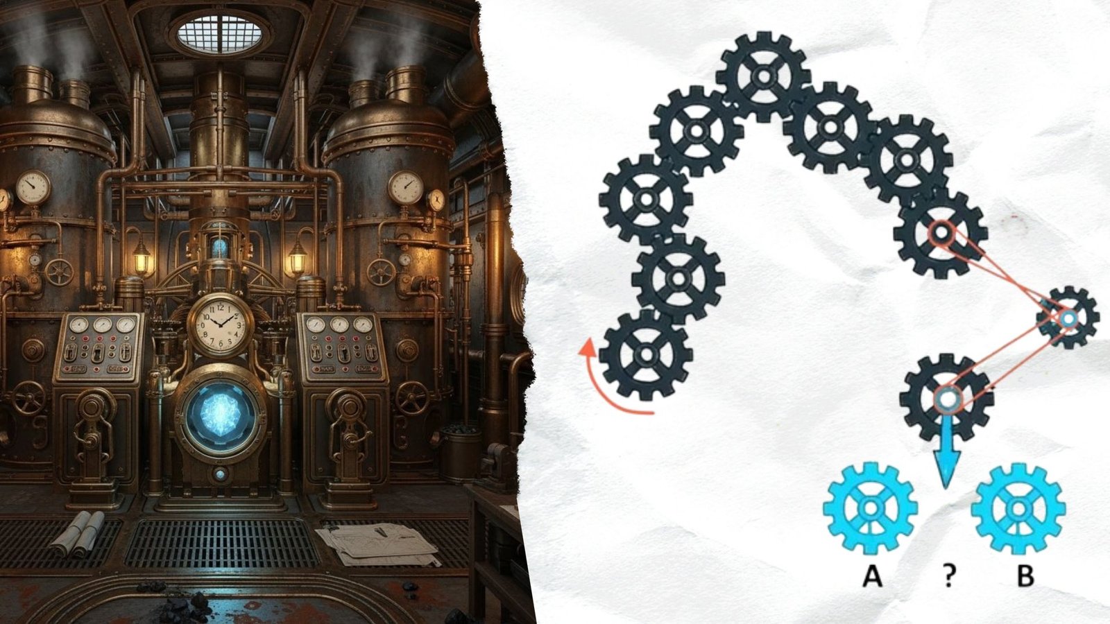 Vous êtes le dernier Space Marine en vie, et votre mission est de protéger un précieux cristal technologique contre les Orks, dont les pas résonnent déjà dans le couloir. Heureusement, vous pouvez verrouiller la porte du coffre qui l’abrite. Mais pour activer le système, vous devez indiquer la direction vers laquelle pointera la flèche du dernier engrenage.