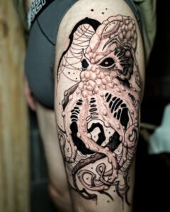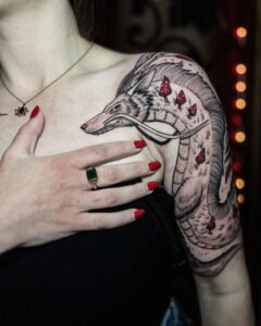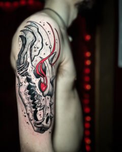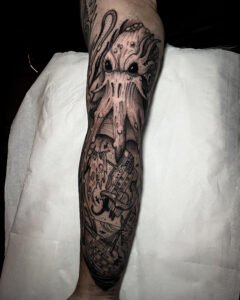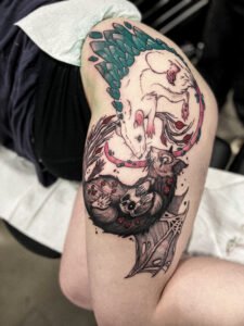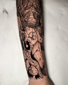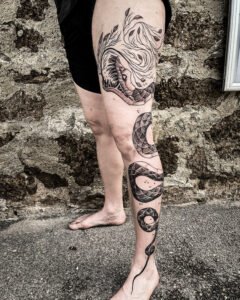 Chaque pièce devient un hommage à ces créatures qui me fascinent depuis l’enfance, et une façon de transformer l’imaginaire en un tatouage unique et vivant.