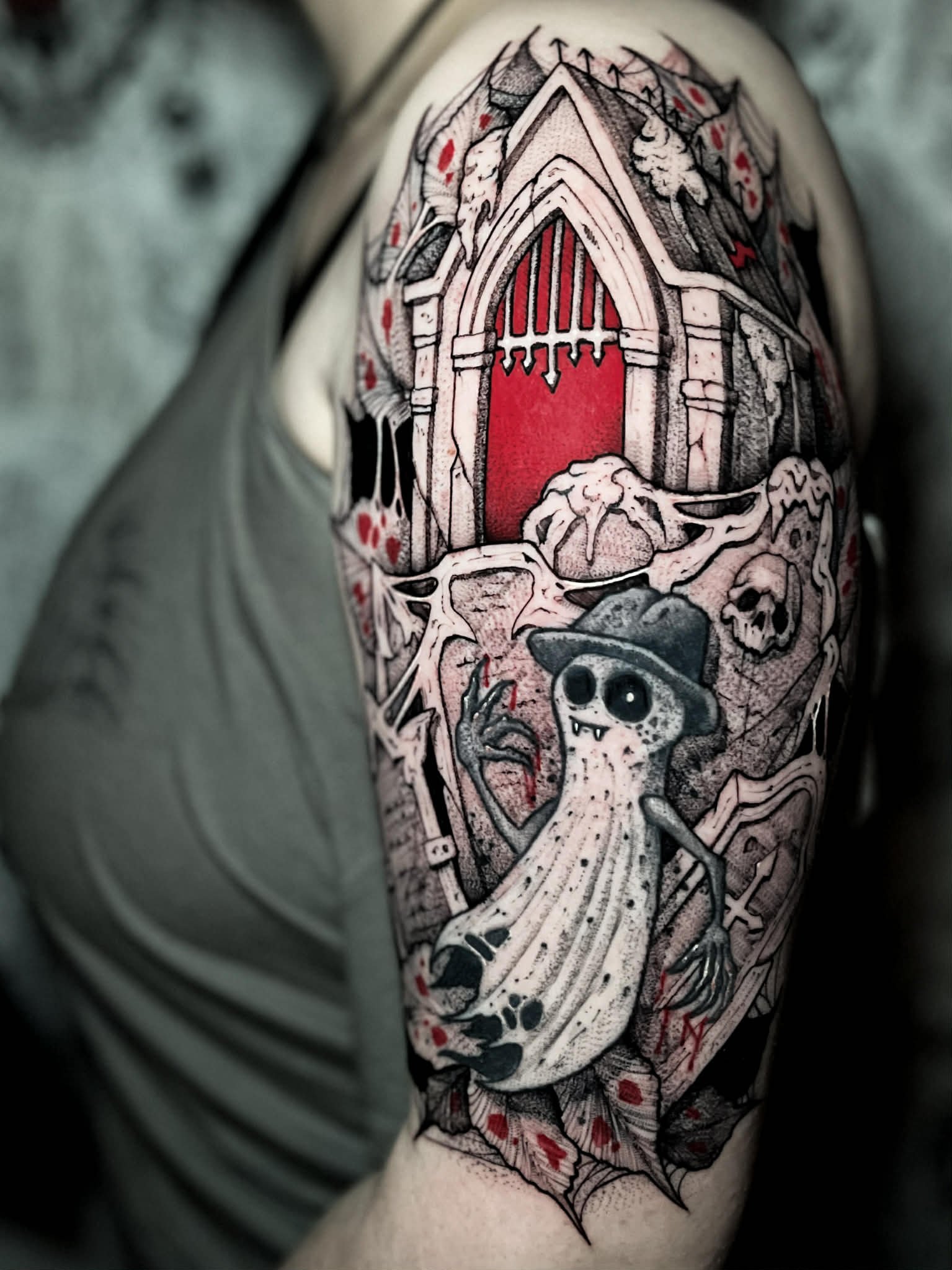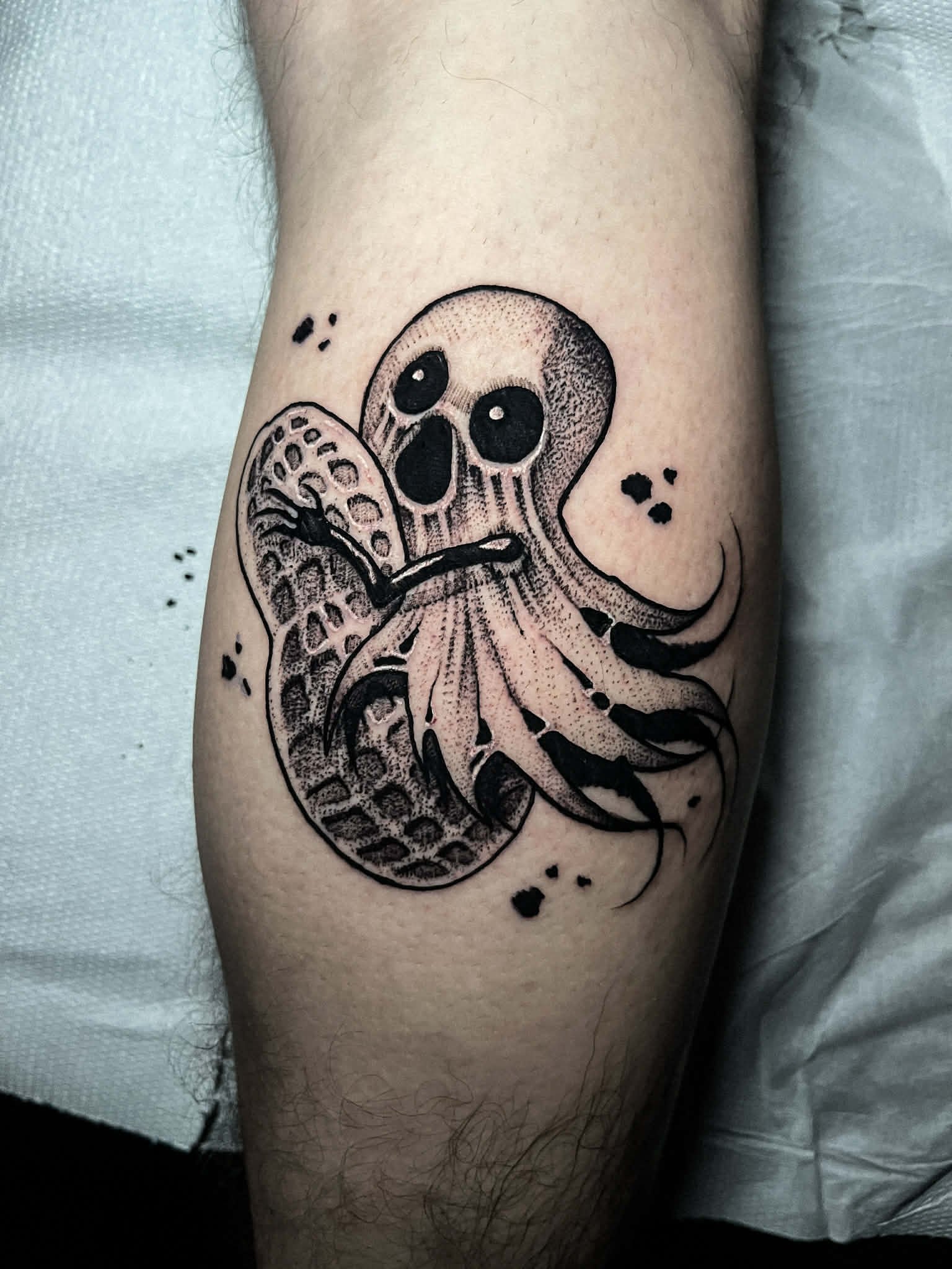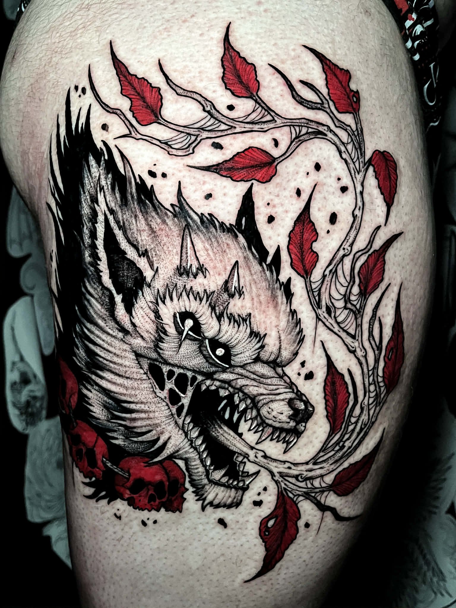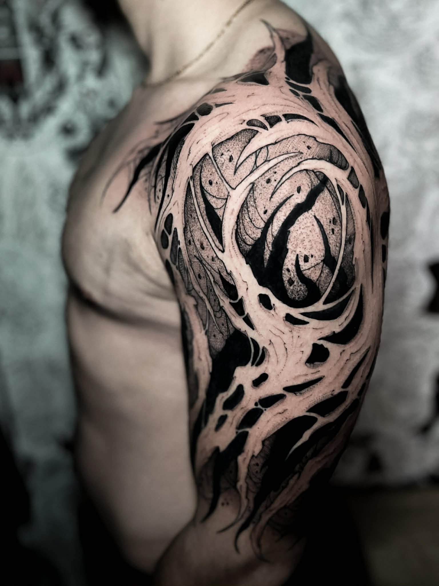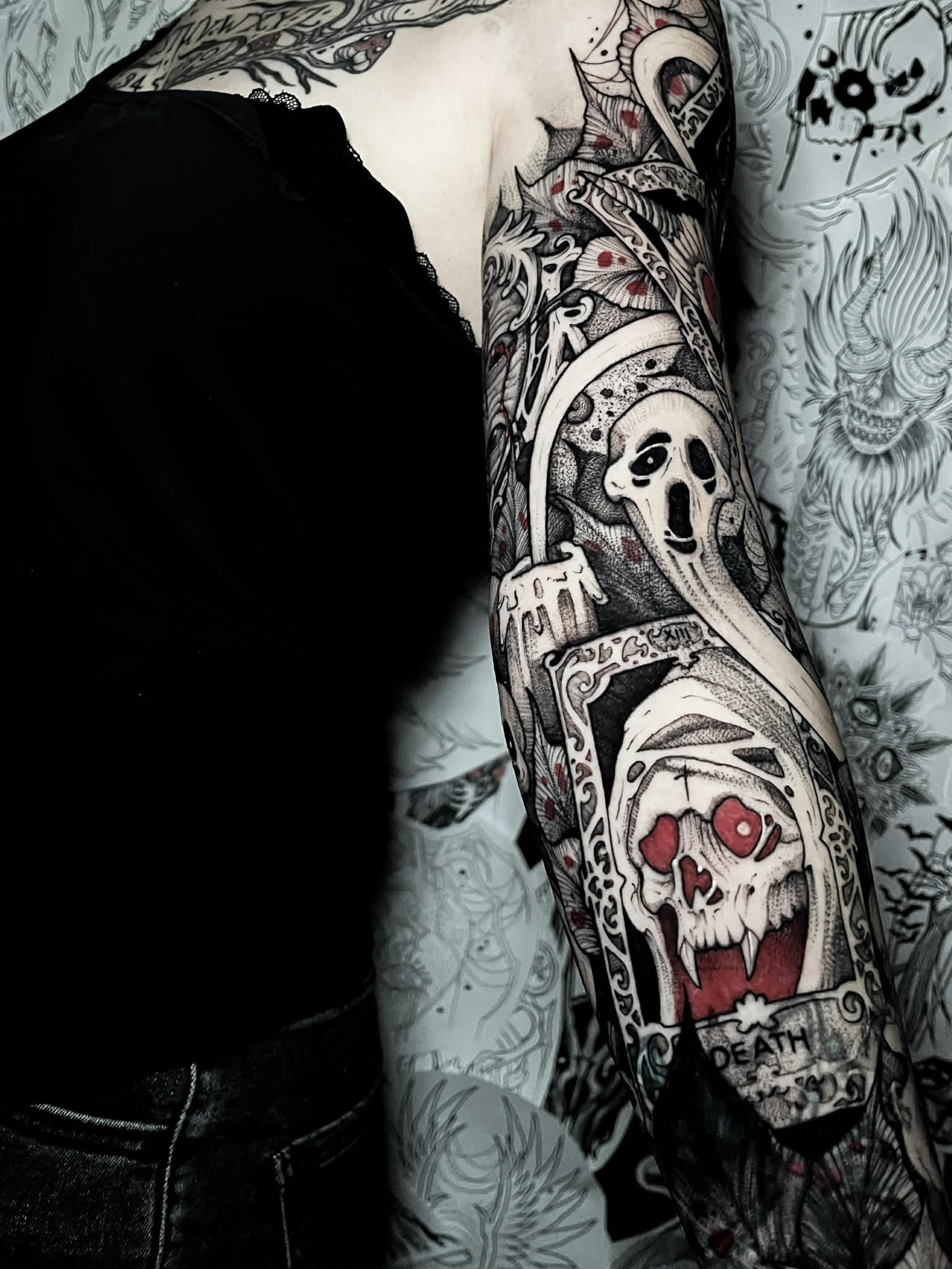 Mon style blackwork, avec ses contrastes forts et ses détails précis, est parfait pour donner vie à ces thèmes : runes, créatures étranges, artefacts anciens…