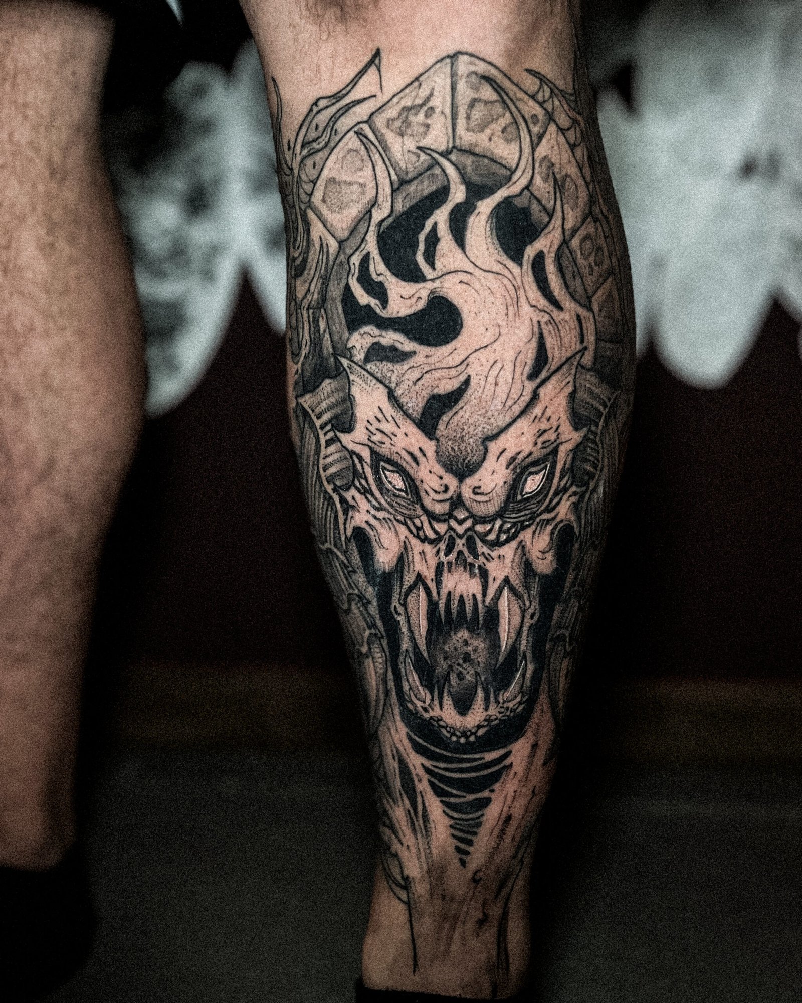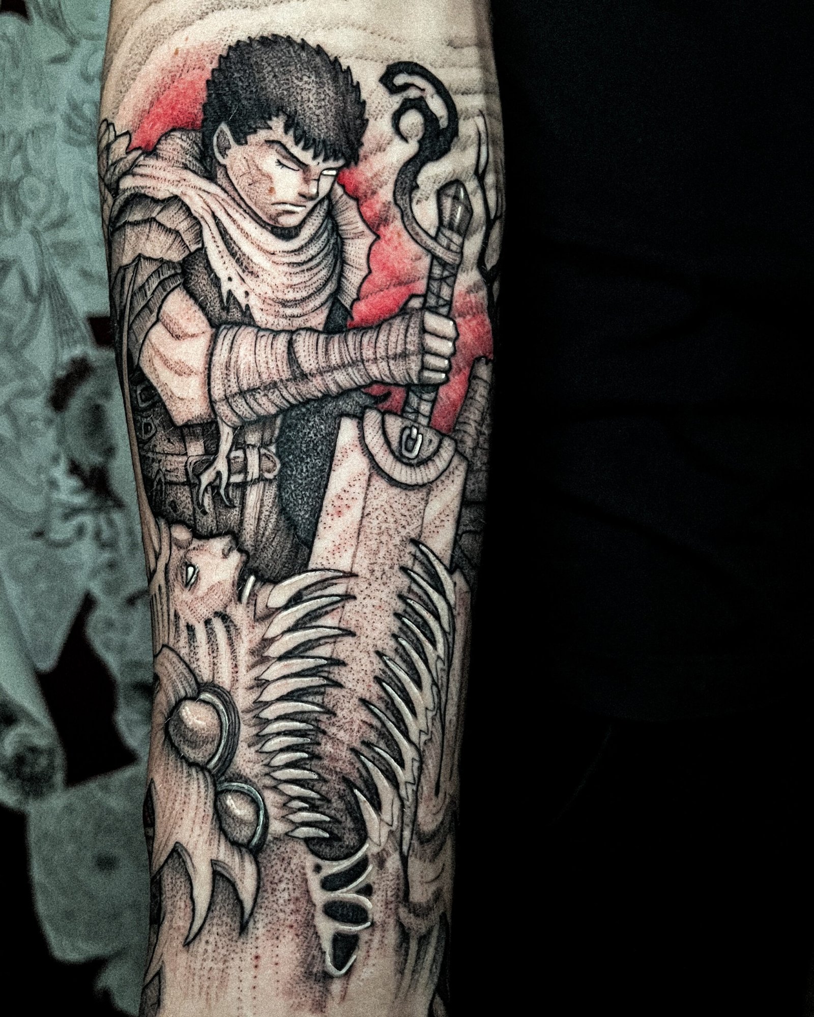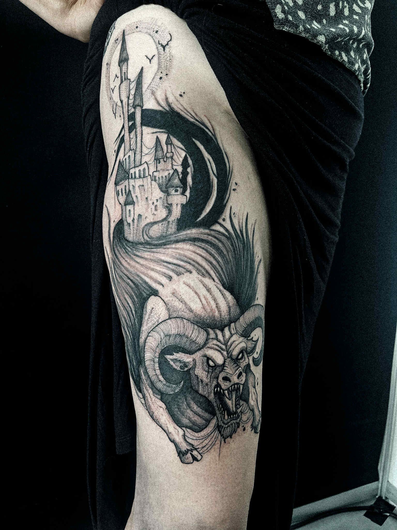 Mon style blackwork me permet de traduire l’intensité de ces univers : silhouettes marquées, contrastes forts, détails qui rappellent un personnage ou une scène culte sans tomber dans la simple copie.